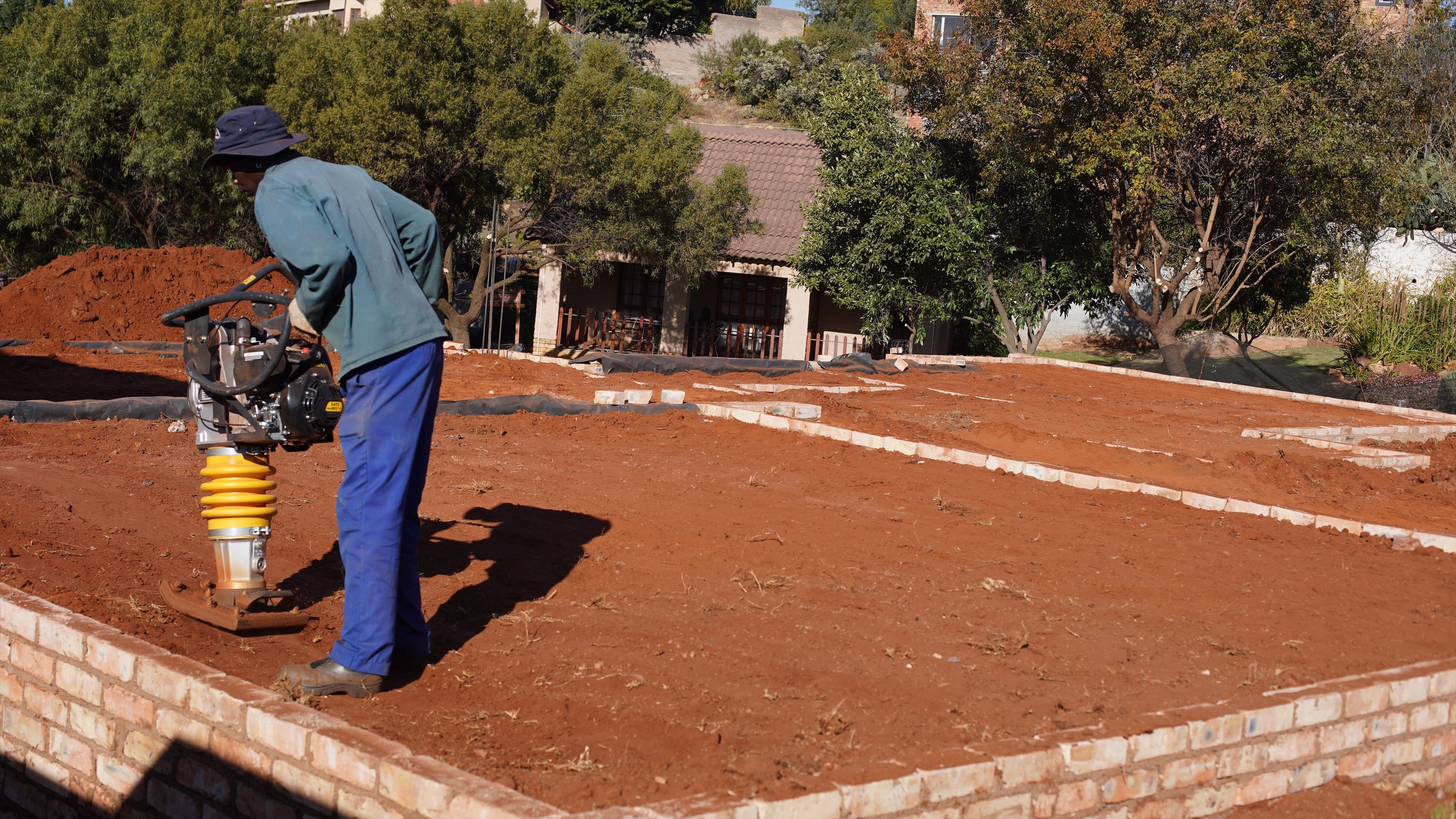 Our site preparation included the delivery and usage of our tlb. With our job being to clear the site of any tree's, debris and rocks, levelling the site and digging where necessary for the foundation to be built. Once built and filled with access soil to the brim, only then comes the handy rammer, to compress and compact the ground in preparing a solid foundation for materials to come.